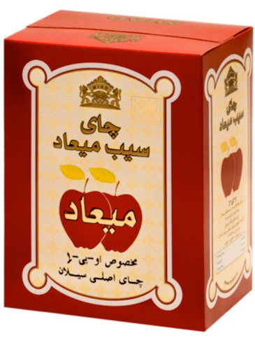 چای سیب میعاد خارجی اصل ( غیر شرکتی ) تفاوت این محصول با محصول مشابه تقلبی و شرکتی اش در نداشتن قیمت مصرف کننده و ثبت تاریخ مصرف به سال میلادی در زیر جعبه است که نشان بر خارجی بودن و اصل بودن محصول است . چای سیب میعاد از نوع قلم پفکی محصول کشور سریلانکا می باشد .